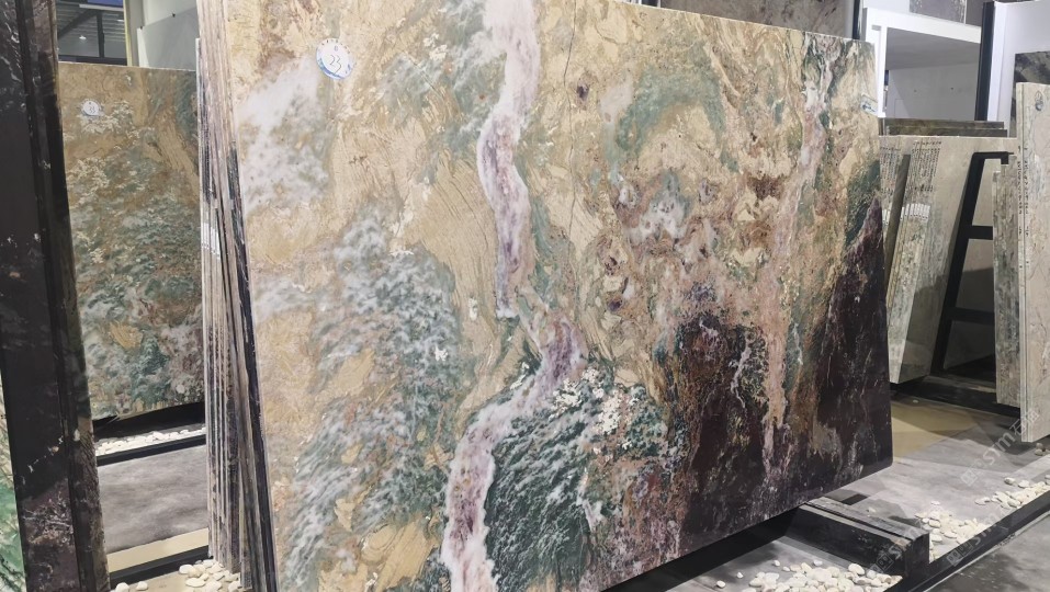 新景印象石畫館常年庫存玉石、奢石、山水畫,現(xiàn)貨大板近15萬平方,品種齊全,庫存豐富,可滿足不同客戶群各個(gè)價(jià)位板面需求。為客戶提供了更全面的選擇空間。未來,這里更將被打造成為華東地區(qū)天然背景石材選材中心。\