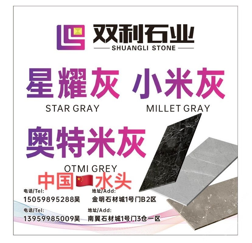 主營(yíng):\\\?\\\?\\\?\\\?星耀灰*小米灰*奧特米灰(賽利灰)云多拉灰\\\\\\\ \\\\\\\ 別名:意大利銀灰\\\\\\\ \\\\\\\ 水頭南翼石材城1號(hào)門3倉(cāng)一區(qū)\\\\\\\ \\\\\\\ 電話13959985009吳\\\\\\\ \\\\\\\ 水頭金明石材城1號(hào)門B2區(qū)\\\\\\\ \\\\\\\ 電話15059895288吳\\\\\\\ \\\\\\\ 南安市石井三利石業(yè)大型工廠\\\\\\\ 13906990202吳