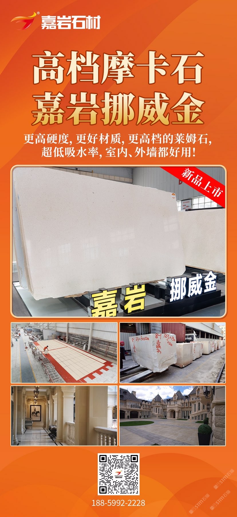 主營萊姆石和洞石:連卡佛洞、法國白(格麗莎)、挪威金、貝寧白、法國棕砂、白木紋、祥云灰等, 主營花崗巖:嘉巖芬蘭黑。