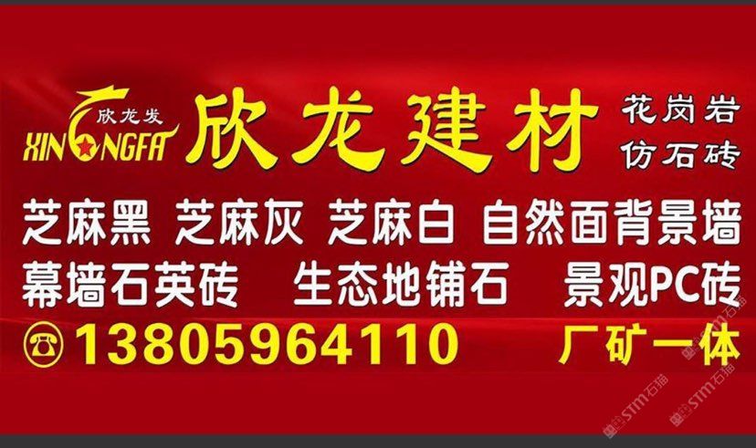 南安市欣龍建材發(fā)展有限公司,位于建材之鄉(xiāng)—福建省南安市石井鎮(zhèn),公司旗下?lián)碛袃纱笾髁Ξa(chǎn)品:花崗巖?仿石磚。(一)花崗巖:廠礦一體,荒料?大板?成品精加工,一站式供應(yīng)。擁有芝麻黑、芝麻灰、芝麻白、銹石、蝦紅、小藍(lán)寶、藍(lán)寶石、泉州紅、永定紅、福壽紅、福建青、鐘山青、喬治亞灰、G606、G617等品種,承接幕墻干掛、園林景觀、市政廣場、機(jī)場高鐵、別墅豪裝、酒店精裝、異形雕刻、自然面背景墻等工程。為石而生,匯聚石尚生活! (二)仿石磚:戶外陶瓷厚磚,接受客戶需求定制。不是石材,更勝石材!抗壓強(qiáng)度高、抗凍性能好、防滑耐磨、綠色環(huán)保。擁有幕墻石英磚、生態(tài)地鋪石、景觀PC磚、環(huán)保熔巖板、陶瓷透水磚、水泥PC磚等系列產(chǎn)品。采用先進(jìn)的技術(shù)與工藝,融匯東西方精粹,不斷創(chuàng)新,將不同文化風(fēng)尚及搭配方式重新組合設(shè)計(jì),開發(fā)現(xiàn)代新穎的產(chǎn)品,造就逼真無瑕的自然外觀質(zhì)感,滿足全球客戶不斷發(fā)展的個(gè)性化需求。產(chǎn)品廣泛應(yīng)用于園林小區(qū)、商業(yè)地產(chǎn)、公園廣場、市政道路、高鐵地鐵、酒店賓館、居家庭院、步行街、寫字樓、度假村、機(jī)場、學(xué)校、醫(yī)院、綠道等干掛鋪裝場所。因?yàn)閷W?,所以專業(yè)!
