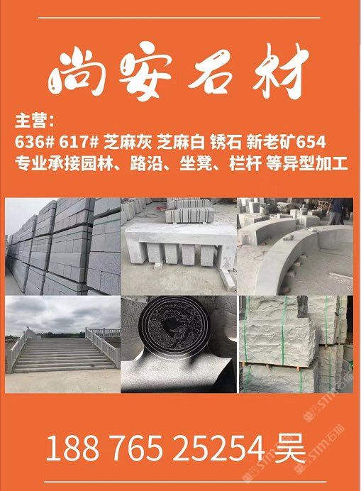 主營(yíng);新老礦芝麻黑 芝麻灰 芝麻白 銹石 636 617 專業(yè)承接 園林地鋪、路沿石、坐凳.欄桿 自然面、菠蘿面、蘑菇石、外墻干掛等異形 厚板加工