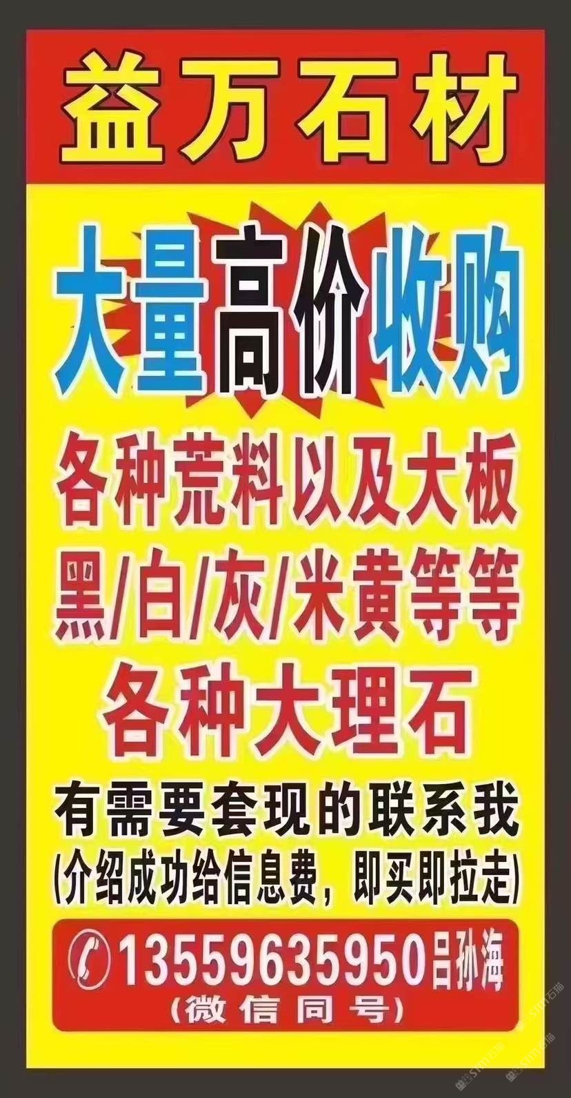 `【長期大量??高價(jià)求購】大板,荒料,多少量都可以;云多拉灰,奧特曼,白玉蘭,南斯拉夫白,溫德姆灰,星耀灰,保加利亞灰,奢石等各種大理石;需要:套現(xiàn)、清倉、換品種的速來,介紹成功給信息費(fèi),現(xiàn)收現(xiàn)拉!微信:13559635950呂孫海微信同號