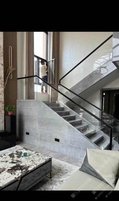 永光石業(yè):月光灰別墅樓梯案例