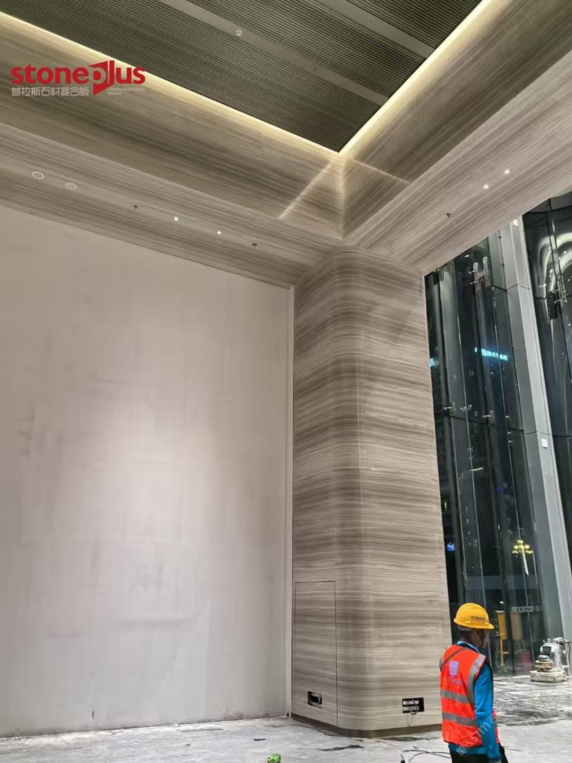 發(fā)布信息: 澳門(mén)中心位于廣州市黃埔區(qū)魚(yú)珠片區(qū),項(xiàng)目定位為商業(yè)商務(wù)綜合體打造以港澳特色為主的、有國(guó)際影響力的科技金融和數(shù)字經(jīng)濟(jì)總部基地,并大力引入澳門(mén)文化和商業(yè)業(yè)態(tài),打造充滿(mǎn)澳門(mén)風(fēng)情的文創(chuàng)藝術(shù)街區(qū),實(shí)現(xiàn)科技金融產(chǎn)業(yè)一體化、粵澳葡三地合作一體化。 其中大樓室內(nèi)墻面采用白木紋復(fù)合鋁蜂窩,預(yù)埋螺栓打孔后再進(jìn)行復(fù)合,到現(xiàn)場(chǎng)進(jìn)行干掛安裝;包柱采用白木紋復(fù)合鋁蜂窩平板拼弧工藝,對(duì)手加工工藝要求較高,我們普拉斯加工對(duì)品質(zhì)的追求與現(xiàn)場(chǎng)的安裝效果相得益彰。
