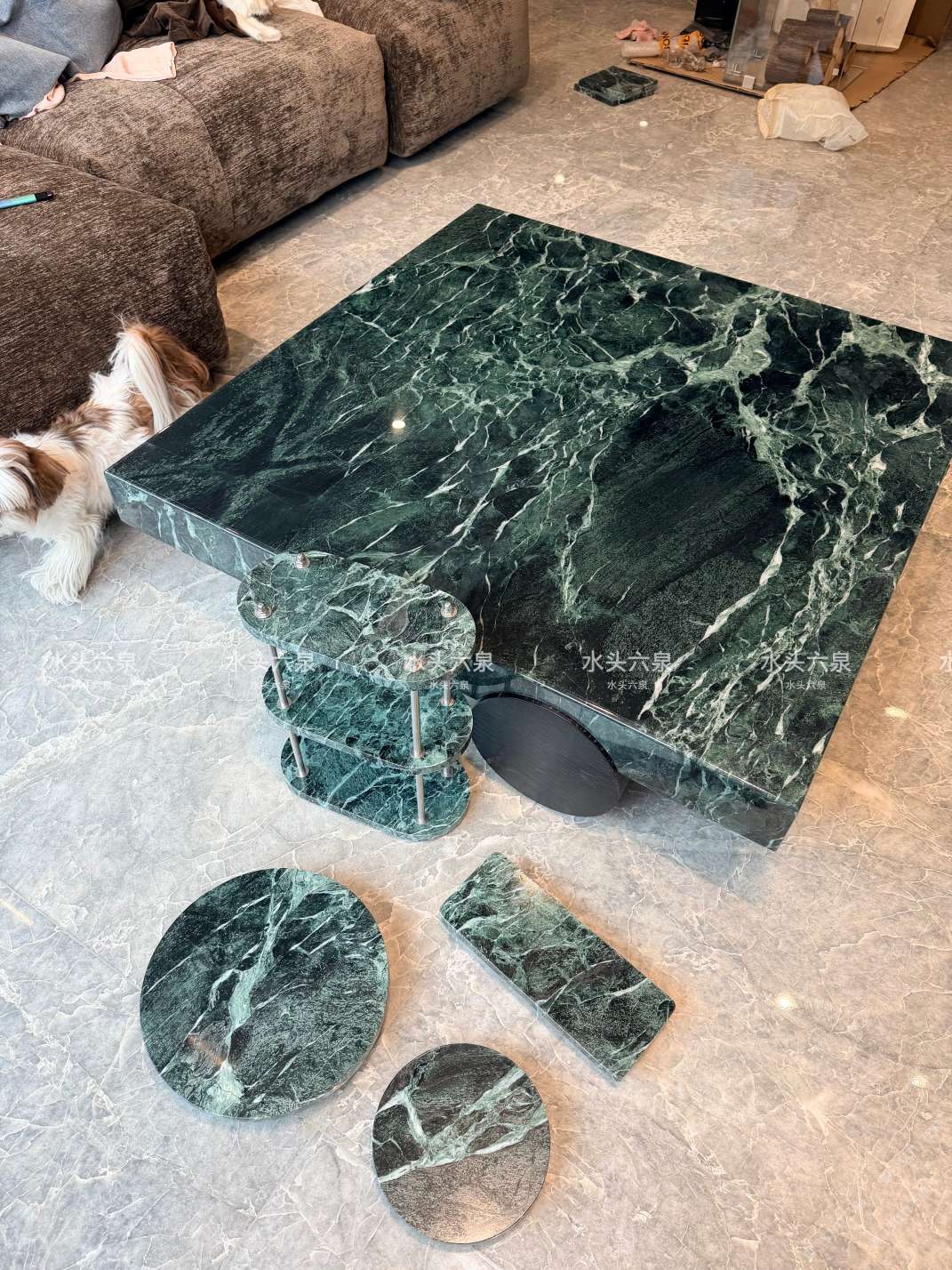發(fā)布信息: 以深邃墨綠為基底,交織著如海浪、藤蔓般的淺綠與白色紋理,自帶奢華自然質(zhì)感