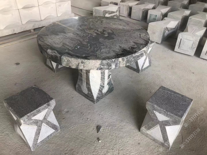 湖北火興石材:浪淘沙(幻彩麻)小方桌圓桌