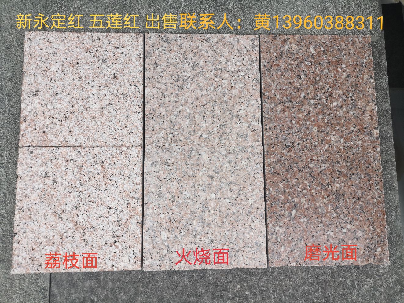 發(fā)布信息: 《金豐石業(yè)》大量現(xiàn)貨芝麻白 芝麻灰 燒面600X300X30 出售:新永定 五蓮紅 福建青 墨綠青 橄欖綠 橄欖青 萬源青 達(dá)州青 浪淘沙 福壽紅 荒料 自有礦山 主營:雕刻 欄桿 光面 荔枝面 燒面 磨菇面 自然面 小方塊 路沿石 承接:各種花崗巖大理石工程單 地址:水頭鎮(zhèn)下店村公路邊 聯(lián)系人黃先生13960388311