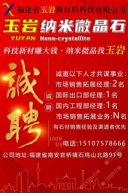 發(fā)布信息: 福建省玉巖新材料科技有限公司 科技新材賺大錢?納米微晶找“玉巖” 企業(yè)文化: 愿景: 融納米微晶石 塑匠心玉巖魂 使命: 推動環(huán)保建材 共建美好未來 價(jià)值觀: 感恩奉獻(xiàn),成人達(dá)己, 科技創(chuàng)新,精益求精。