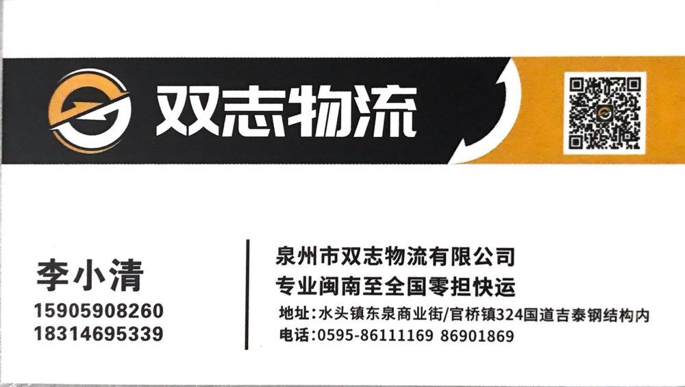 發(fā)布信息: 【雙志物流】十七年專業(yè)福建閩南至全國零擔(dān)往返快運倉儲配送等貨物運輸!大泉州地區(qū)同城一日達(dá)物流運輸,水頭、官橋、晉江三個倉儲中心打造大泉州同城智慧物流。歡迎廣大客戶監(jiān)督指導(dǎo)合作共享! 零擔(dān)天天發(fā)車,隨時可提貨! 歡迎新老朋友來電咨詢?? 手機(jī)微信同號? 整車熱線:15905908260 零擔(dān)熱線:13505987769