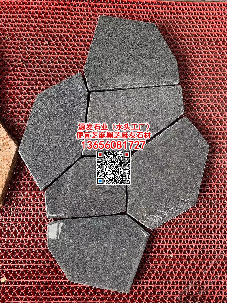 芝麻黑天然冰裂紋地鋪石亂拼碎拼石材G654亂形石