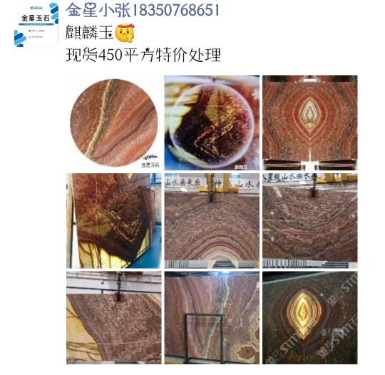 金星石業(yè)有限公司 聯(lián)系人:黃    152****2319 查看 183****8651 查看 主營范圍: 大板批發(fā)、荒料、大理石加工、石材交易市場、玉石加工、 企業(yè)地址:福建泉州南泰石材城H8