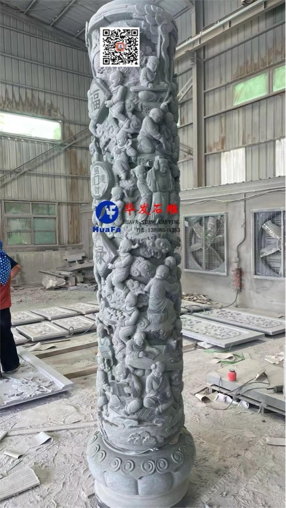 祠堂石雕百子文化柱