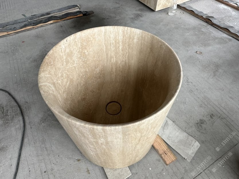 洞石浴缸 圓形柱盆 拖把池石材家居浴室家具石材衛(wèi)浴
