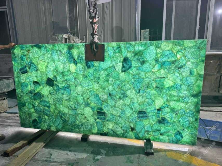 批發(fā)定制透光綠水晶大板,定制綠水晶寶石吧臺,家具臺