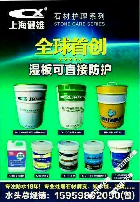 發(fā)布信息: 需要做防水的找我哦!主營(yíng):水性防水劑,油性防護(hù)劑(濕板直接防水,質(zhì)量超級(jí)好?。◢弾r除銹劑(超級(jí)好用,不會(huì)再反銹),大理石除黃劑,花崗巖增色增艷劑!水斑劑等等!咨詢(xún)電話(huà)??15959862050
